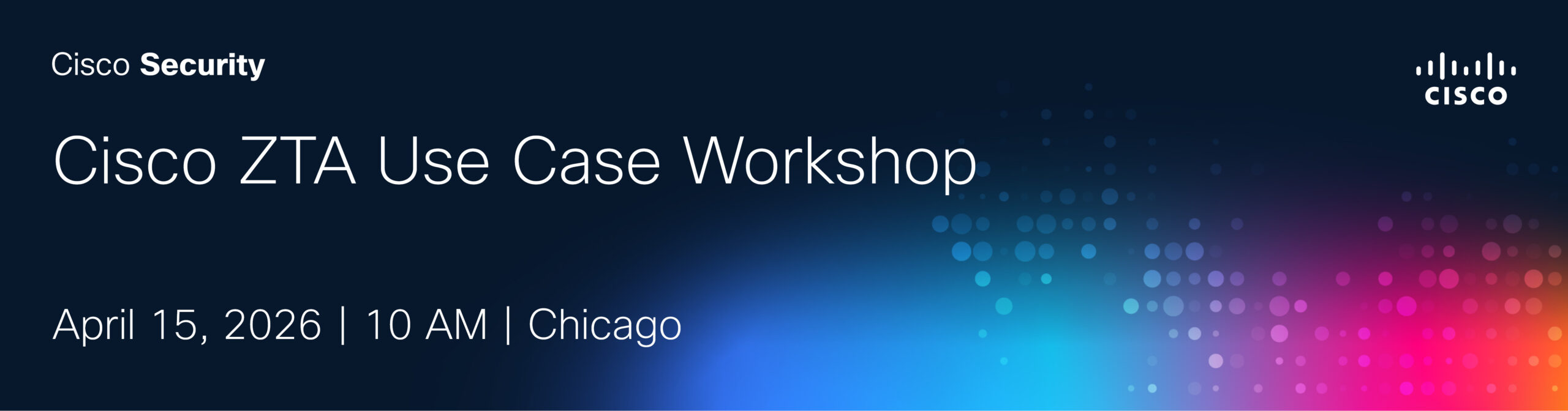 Join Cisco for an in-person ZTA Use Case Workshop designed for security and IT leaders navigating hybrid work, cloud adoption, and zero trust.